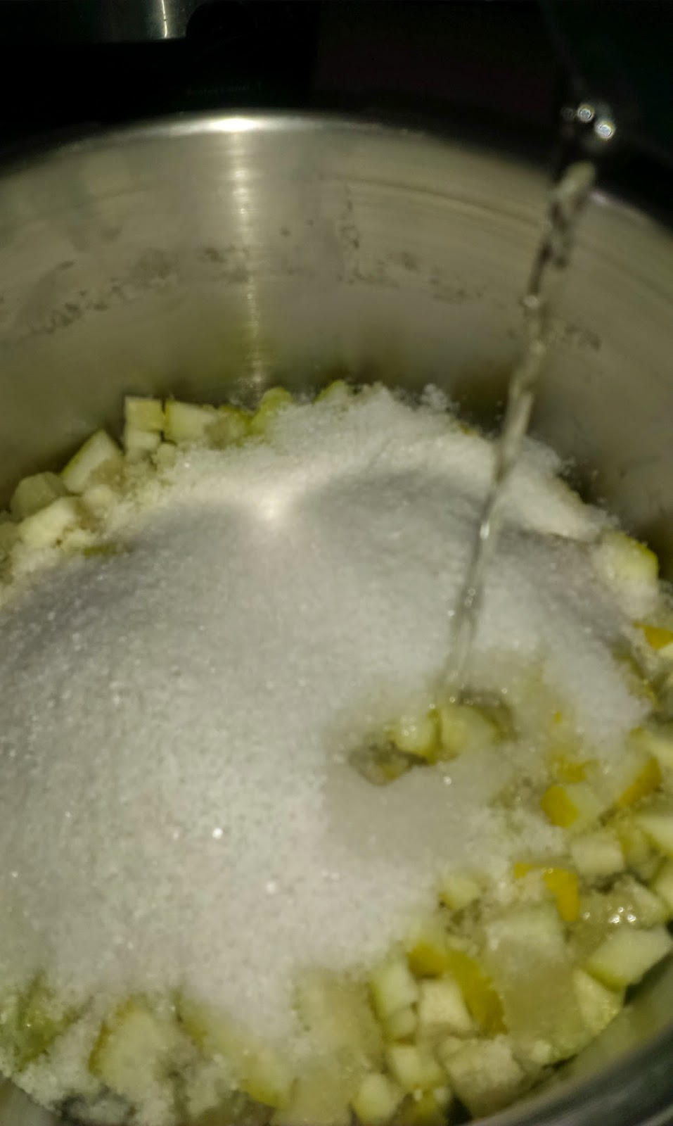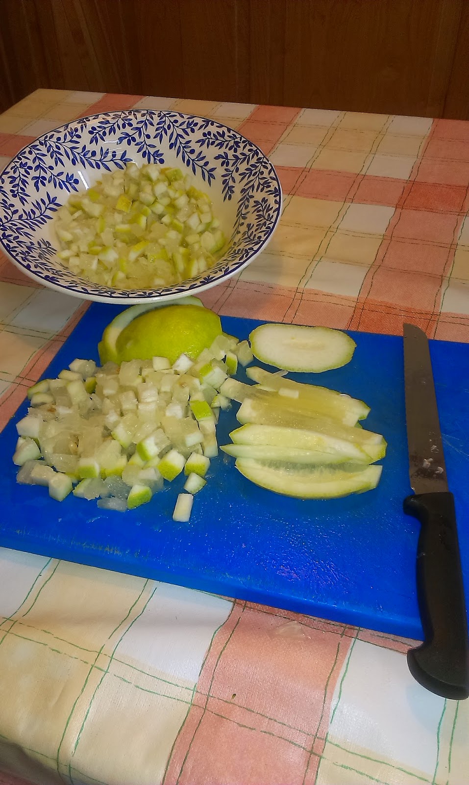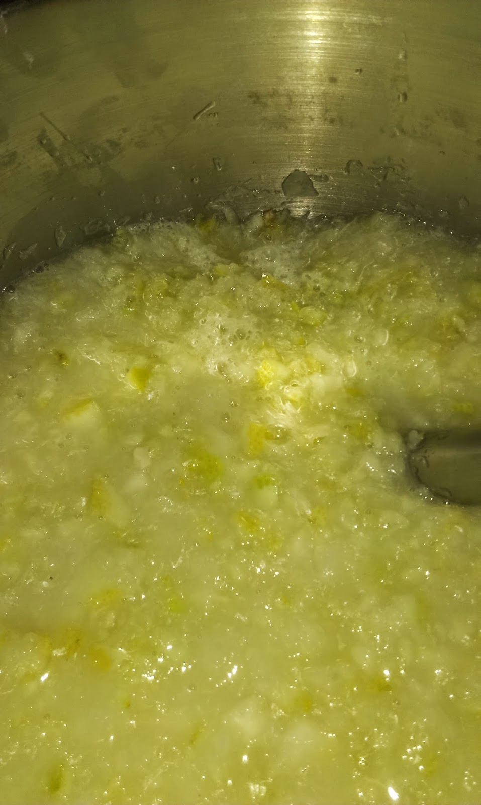 PASO 1. Picar los limones como para tortilla y meterlos en una tartera. En este momento se pueden batir por primera vez, para triturarlos lo más que se pueda. Se añade a la tartera la sal gorda, el vinagre blanco y el agua y se pone a hervir.