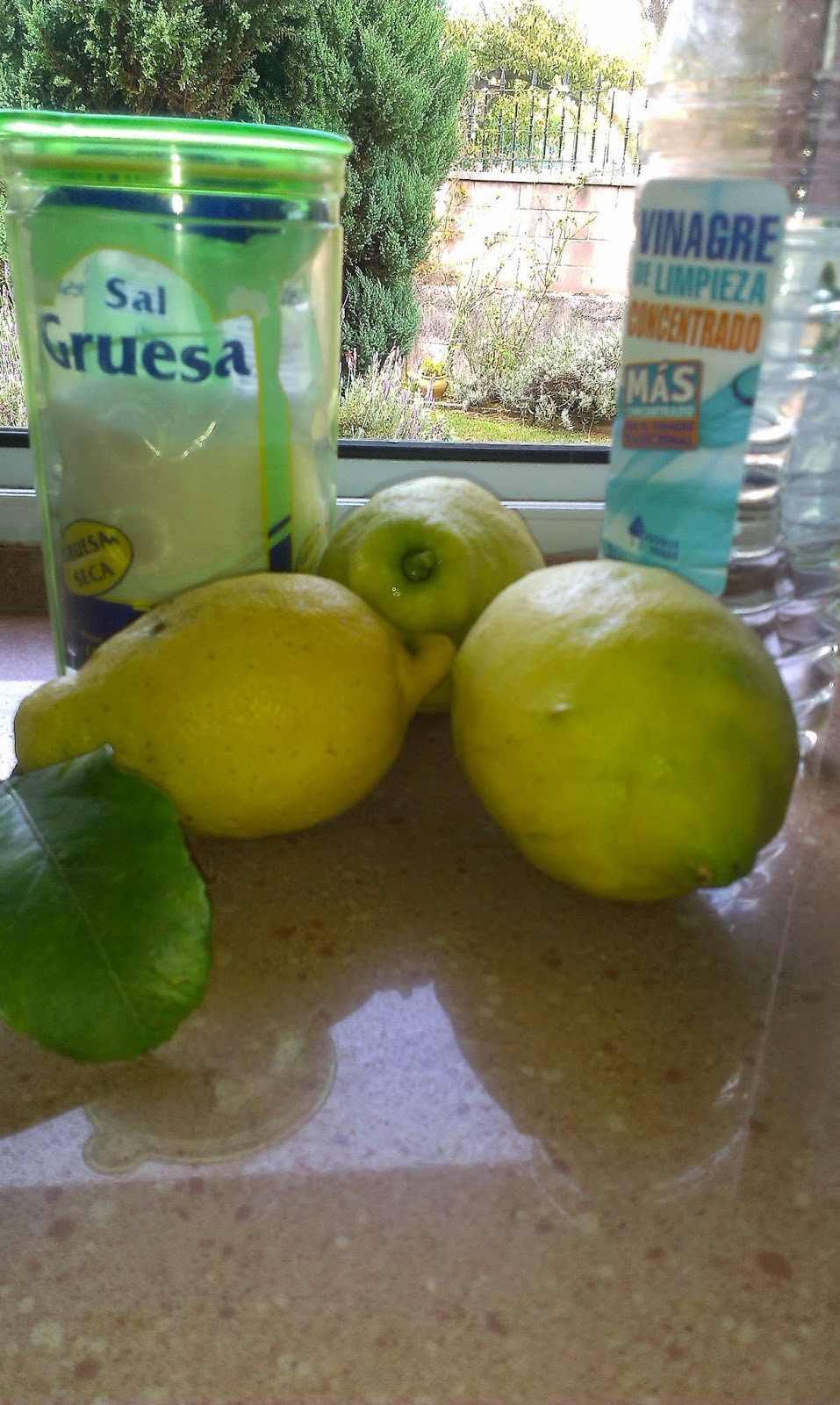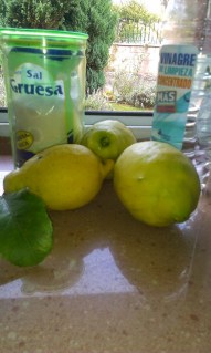 INGREDIENTES: 3 limones enteros, 400 ml. de agua, 200 gr. de sal gorda y 100 ml. de vinagre blanco.