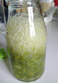 Se limpia, corta, trocea y se tritura. Se cubre con orujo y se deja macerar a la sombra en un tarro de vidrio durante 28 días, agitando de vez en cuando.