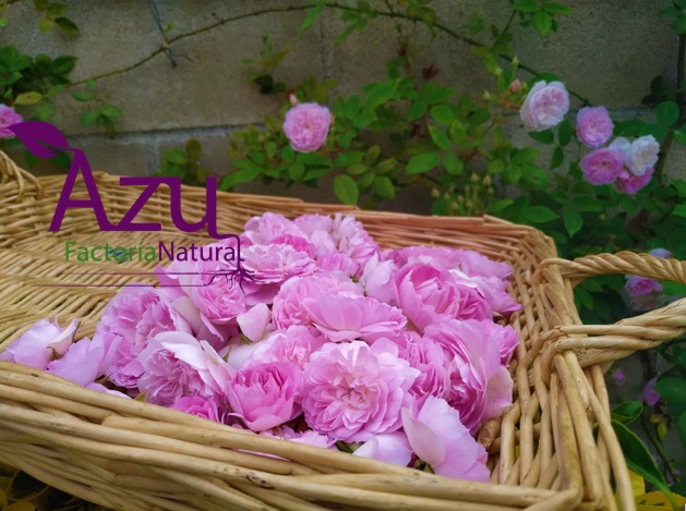 El aceite esencial de rosas, además de ser un potente antiarrugas y regenerador cutáneo indicado para luchar contra la flacidez, es un potente cicatrizante, que alivia algunos eccemas, sobre todo de bebés y niños pequeños, así como inflamaciones cutáneas y piel asfixiada y congestionada. Utilizaremos macerados, hidrolatos y aceites esenciales y absolutos de las variedades de Rosa Damascena, Rosa Centifolia, Rosa Mosqueta y Rosa Canina. El hidrolato de rosa centifolia es de producción propia, a partir de nuestras destilaciones en alambique, con los pétalos frescos de las rosas de nuestro Jardín aromático.
