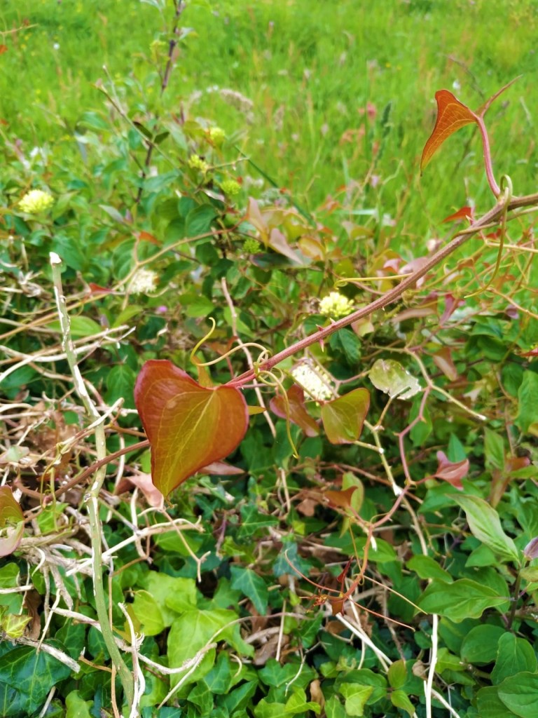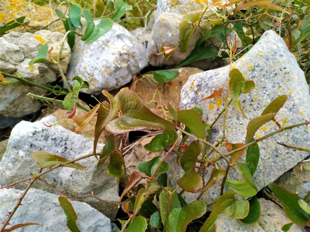 En nuestros paseos campestres, es usual encontrarnos entrelazada, como buena enredadera que es, a un muro de piedras derruido, laa hermosa zarzaparrilla, se trata de la Smilax áspera, es decir, nuestra zarzaparrilla europea.
