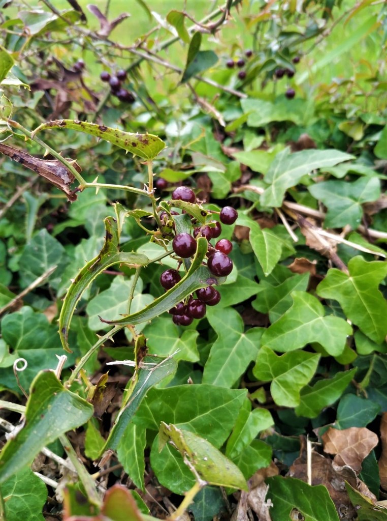 Y seguimos tirando del hilo de sus historias para detenernos un momento en la madeja enmarañada de su nombre, pocas plantas lo tienen colocado de forma tan precisa y descriptiva, ya que zarzaparrilla, es una palabra formada por zarza y parra, con el sufijo diminutivo, por lo que significa exactamente lo que es: una zarza, por sus pinchos, enredadera y trepadora con zarcillos como la parra, pero con sus frutos más pequeñitos, de ahí lo de parrilla. Sin embargo, a diferencia de la parra parra, con sus uvas deliciosas, no se os ocurra comer las de la zarzaparrilla, porque os provocarían diarreas y vómitos, debido a la toxicidad provocada entre otros por las saponinas que contienen.