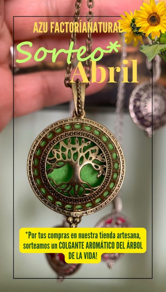 PREMIO del SORTEO DE PRIMAVERA: Un COLGANTE AROMÁTICO del ÁRBOL DE LA VIDA, portador de aceites esenciales. Contiene en su interior un fieltro que se puede empapar con tu aceite esencial preferido o combinación aromática.