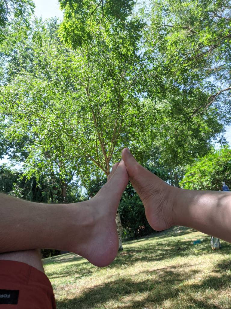 Lo que quiero hablaros es de los pies negros de Edu, todo el día descalzo, por el jardín, la huerta, entre las plantas, por casa…y de los pies descalzos de mi hijo Manuel, desde que nació: nunca le gustó calzarse.