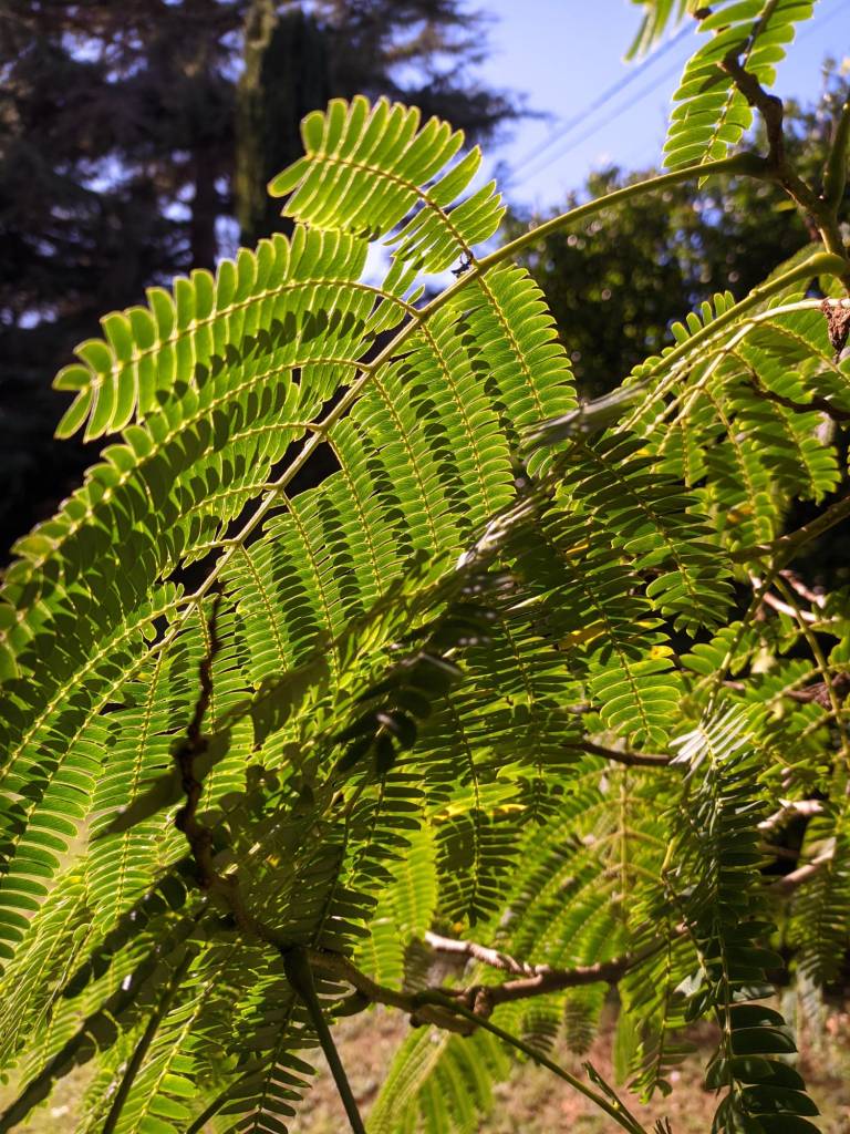 Geometría vegetal en las hojas del Árbol de la seda. Familia de las mimosas, se repliegan con la ausencia de luz, y se expanden en toda su amplitud al sol.