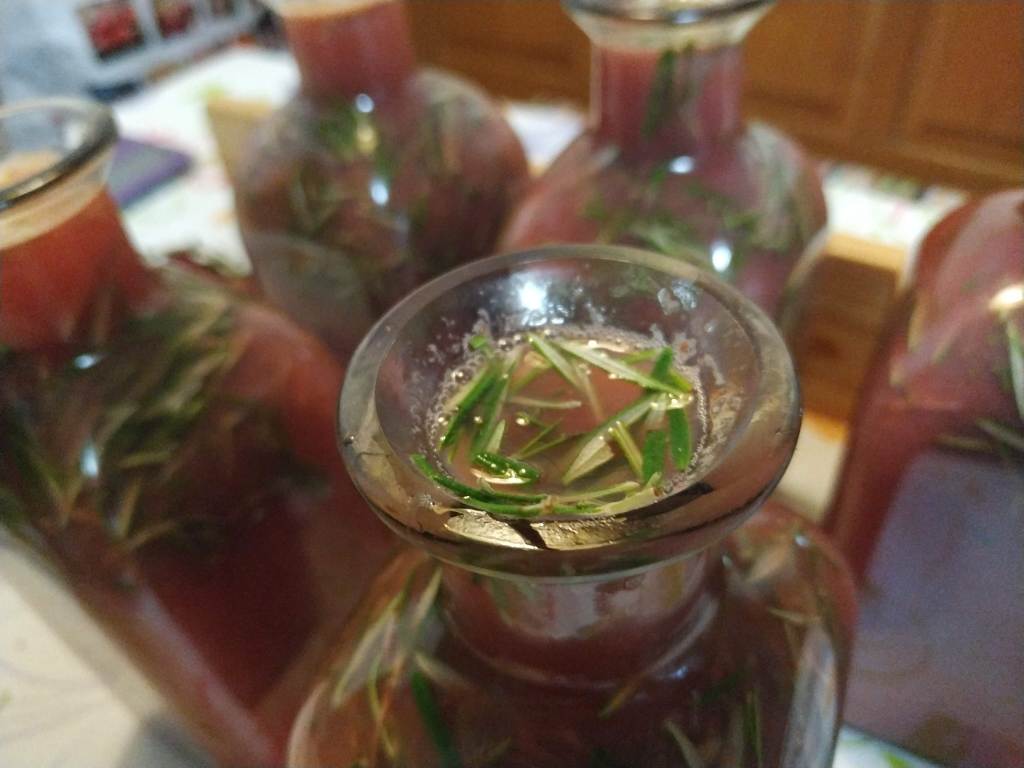 1 litro de zumo natural de uva roja, 5 ramas de romero frescas.
