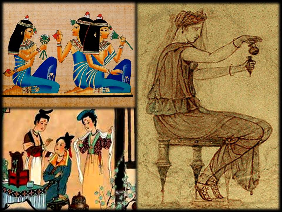 Quizá los egipcios fueron los primeros aromaterapeutas: el papiro de Ebbers, de 1700 a.C. ya recoge entre sus más de mil recetas curativas, procesos de destilación, con los que obtenían, por ejemplo, la esencia de cedro. Pero donde más demostraron sus conocimientos de las plantas aromáticas, las resinas y los aceites esenciales es en los procesos de momificación, para la conservación de los cadáveres.Sin embargo, estos saberes y prácticas quedaron en desuso con la farmacopea moderna y la quimioterapia del siglo pasado, y perduró únicamente la función aromática de los aceites esenciales para perfumería y cosmética.
