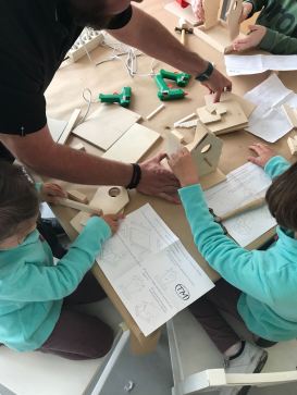 Los niños, acompañados de padres o adultos, entrarán en contacto con un taller de carpintería, con los planos de la caseta, y con las piezas ya pre-cortadas, para realizar ellos mismos el ensamblaje, después del lijado y preparación.