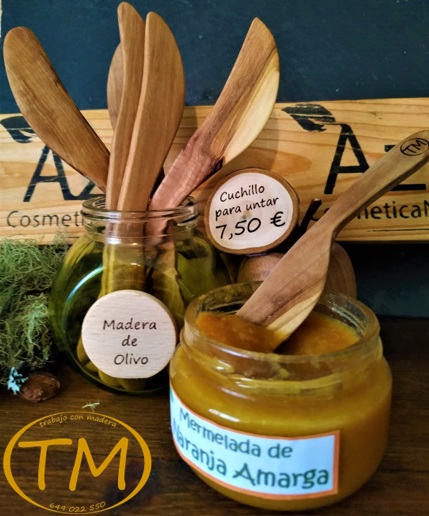 Estos cuchillos salen del taller de artesanía de Edu, elaborados en madera de olivo, en maderas de boj, roble, limonero, cedro, etc. y los puedes usar para untar ya sea mermeladas, patés, mantequillas, quesos, etc. o incluso también para usar en arcillas.