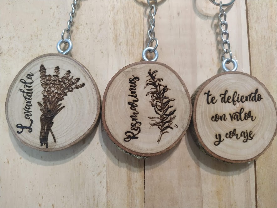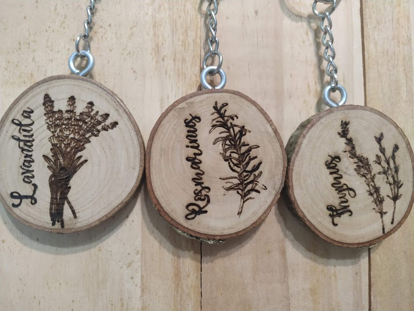 Con estos llaveros queremos hacer un homenaje a las plantas aromáticas y medicinales que son el corazón de nuestro trabajo, de nuestra vocación, de nuestra pasión de vida. Grabados por las dos caras, se los dedicamos a: la lavanda, el romero, el tomillo…y vendrás más¡¡¡