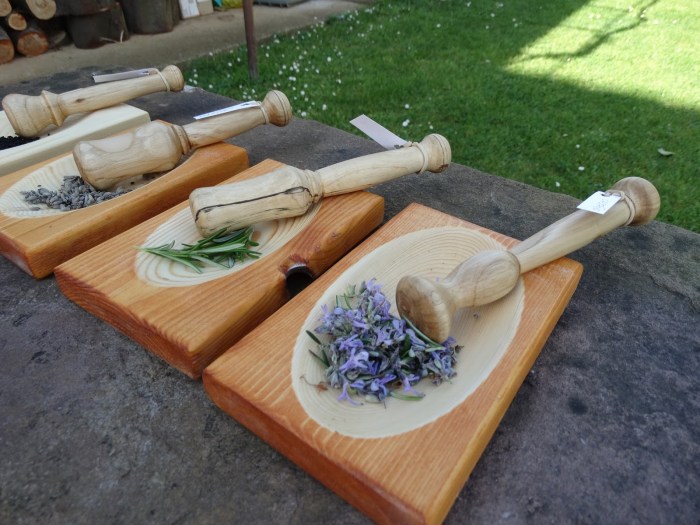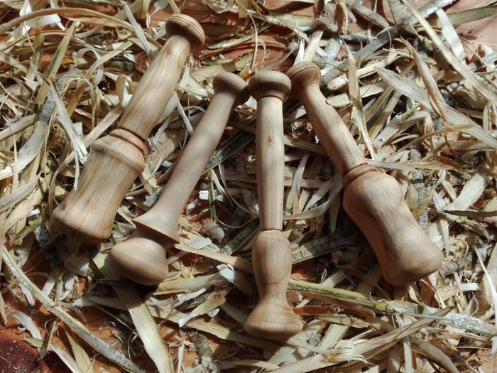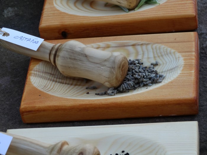 Se venden junto o separado con la maza o mortero que son de madera de castaño, abedul o avellano principalmente, tratados una vez más con cera de abejas y aceite de oliva.
