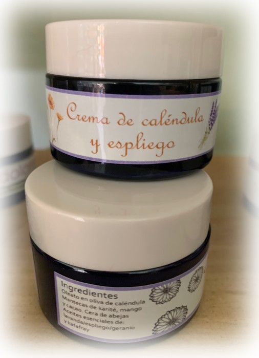 Ingredientes*: Oleomacerado de caléndula, malva y manzanilla en aceite de oliva virgen de producción propia, manteca de karité, manteca de mango, manteca de cacao, cera de abejas. Aceite esencial de lavanda (Lavandula angustifolia), Aceite esencial de espliego (Lavandula spica), Aceite esencial de Geranio (Pelargonium graveolens) Aceite esencial de Katafray (Cedrelopsis grevei).