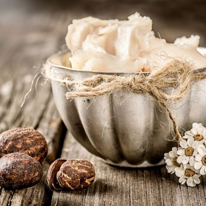 Otro de los ingredientes altamente reparadores es la manteca de Karité, poderoso reafirmante de origen vegetal y extremadamente hidratante. Utilizado durante años por las pieles africanas, de donde es originario. La manteca de karité actúa recubriendo la piel con una película invisible que evita la deshidratación y la protege de las agresiones externas, como el sol, el viento o los cambios bruscos de temperatura.