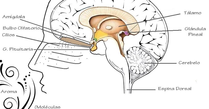Entre otras partes, contiene la amígdala cerebral que es la responsable de relacionar un aroma con una emoción, y en el hipocampo se relaciona el aroma con un recuerdo almacenado en nuestra memoria.