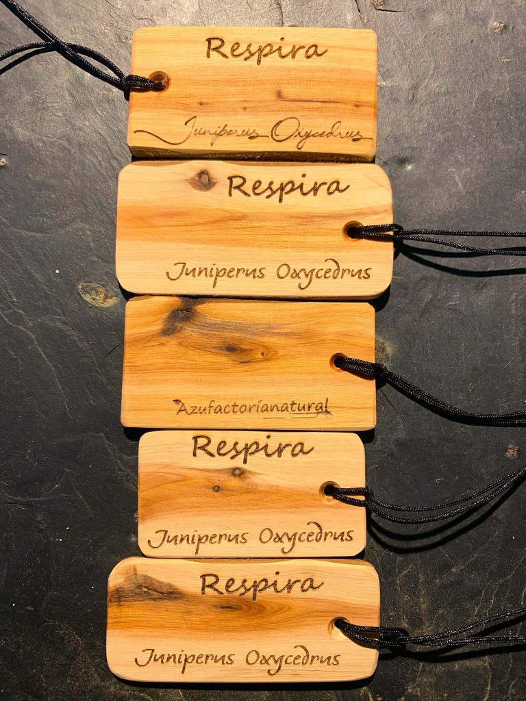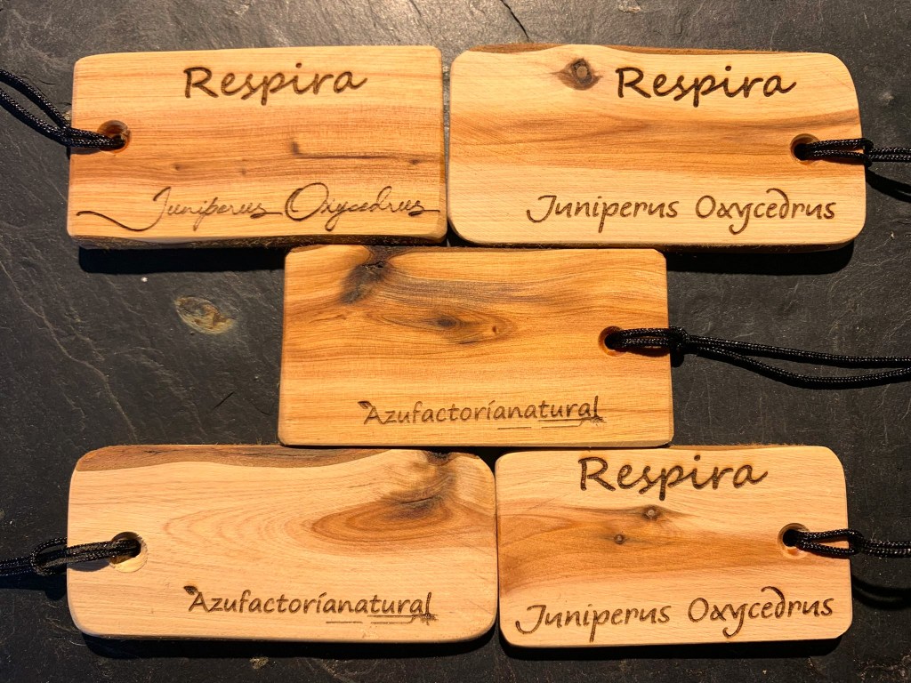 Con madera aromática de enebros, desde el taller de artesanía de Edu, han nacido estos ambientadores para el coche, aunque también pueden decorar y aromatizar cualquier otra estancia.