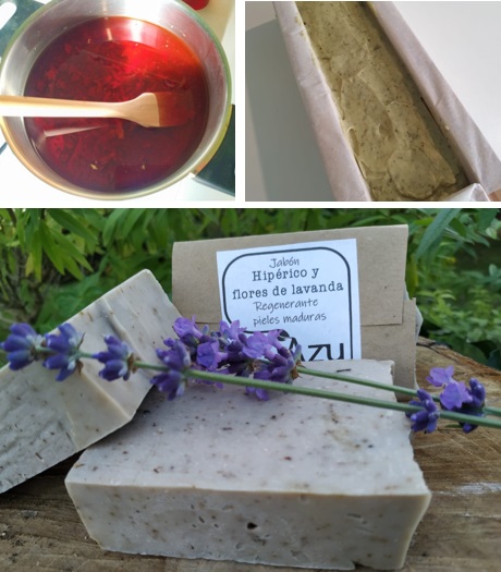 *Todos nuestros jabones se hacen en su totalidad con aceites vegetales en los que se han macerado plantas aromáticas y medicinales. Todo el proceso de elaboración de cada jabón puede llevar de seis a doce meses: la saponificación en frío del jabón suponen 40 días, que en algunos casos se amplía de dos a cuatro meses, dependiendo de la textura final. El proceso de maceración lleva de dos a seis meses, dependiendo del tipo de maceración. Previamente a la maceración, ha habido que cultivar y secar durante dos a cuatro semanas, o bien recolectar en el lugar y momento justo de concentración de principios activos, y en ambos casos, con criterios ecológicos, de respeto y cuidado con el medio ambiente. Tienes en tus manos un producto artesano, elaborado con mimo, cuidado, dedicación y tiempo, mucho tiempo.