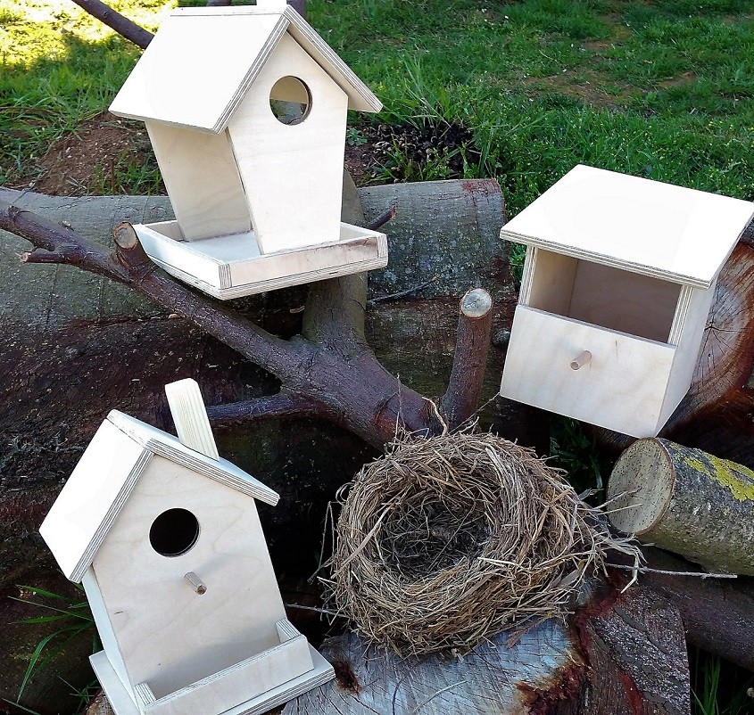 Para iniciar a tus hijos en el trabajo artesano con madera, como si fuera un pequeño aprendiz de carpintería, y con el fin de concienciarlos en la importancia y necesidad de proteger y cuidar los pájaros respetando su hábitat y sus costumbres, te presentamos este Kit de construcción, con el que podréis construir con ellos hasta 3 modelos diferentes: Una casita-nido, una caja nido y un comedero de pájaros.