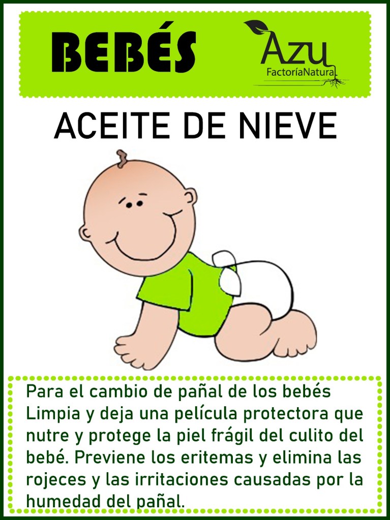 En una formulación para bebés, el ACEITE DE NIEVE incluye olemacerado de caléndula, lavanda y manzanilla en aceite de oliva virgen, y aceite esencial de lavanda. Sin embargo, no sólo los BEBÉS se pueden beneficiar de este preparado maravilloso, sino que también lo puede usar cualquier persona con irritaciones.